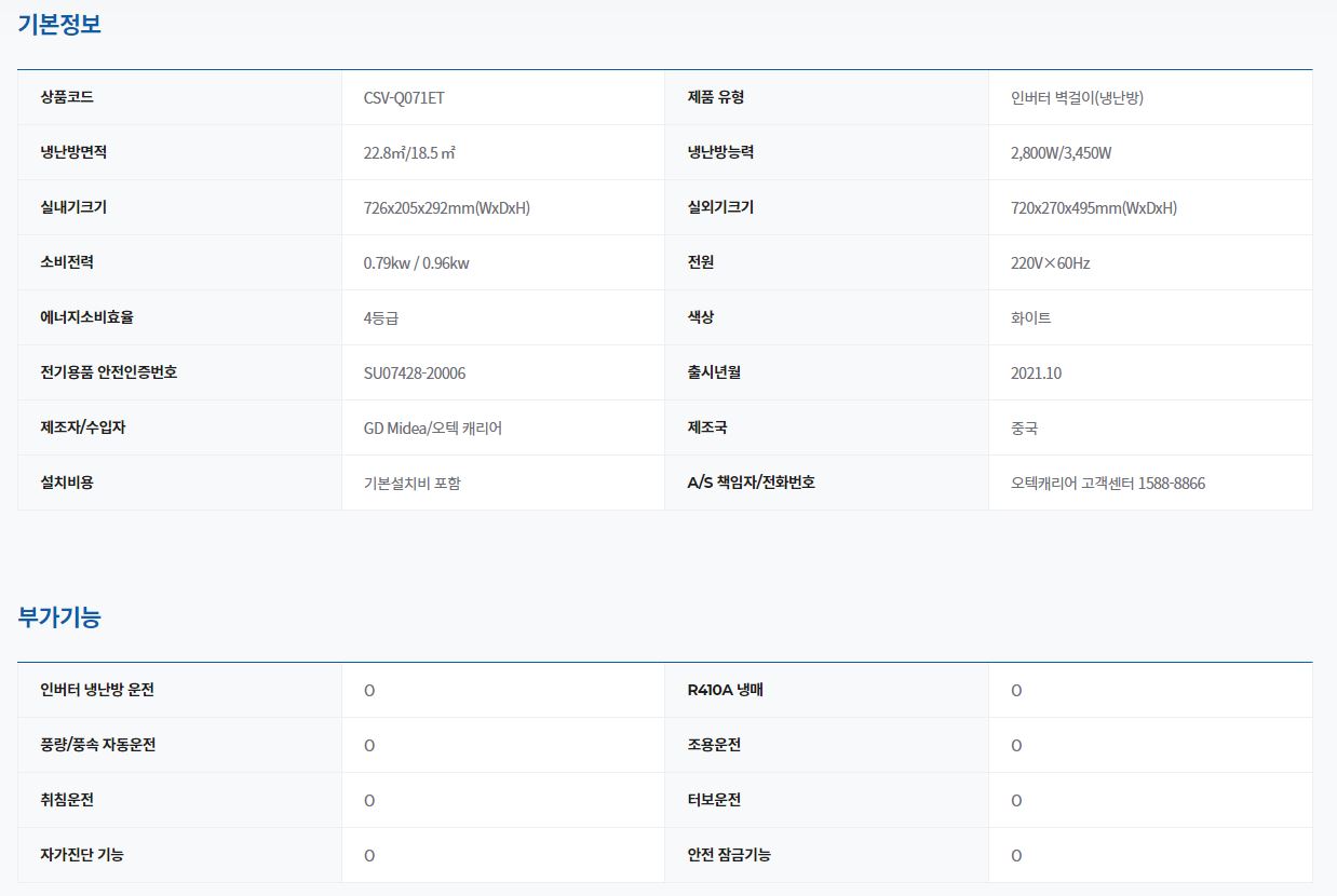 7평 캐리어 인버터 벽걸이(냉난방) CSV-Q071ET 의무사용 기간 3년/4년/5년 등록비면제, 기본설치비면제 (※단, 도서산간지역제외)