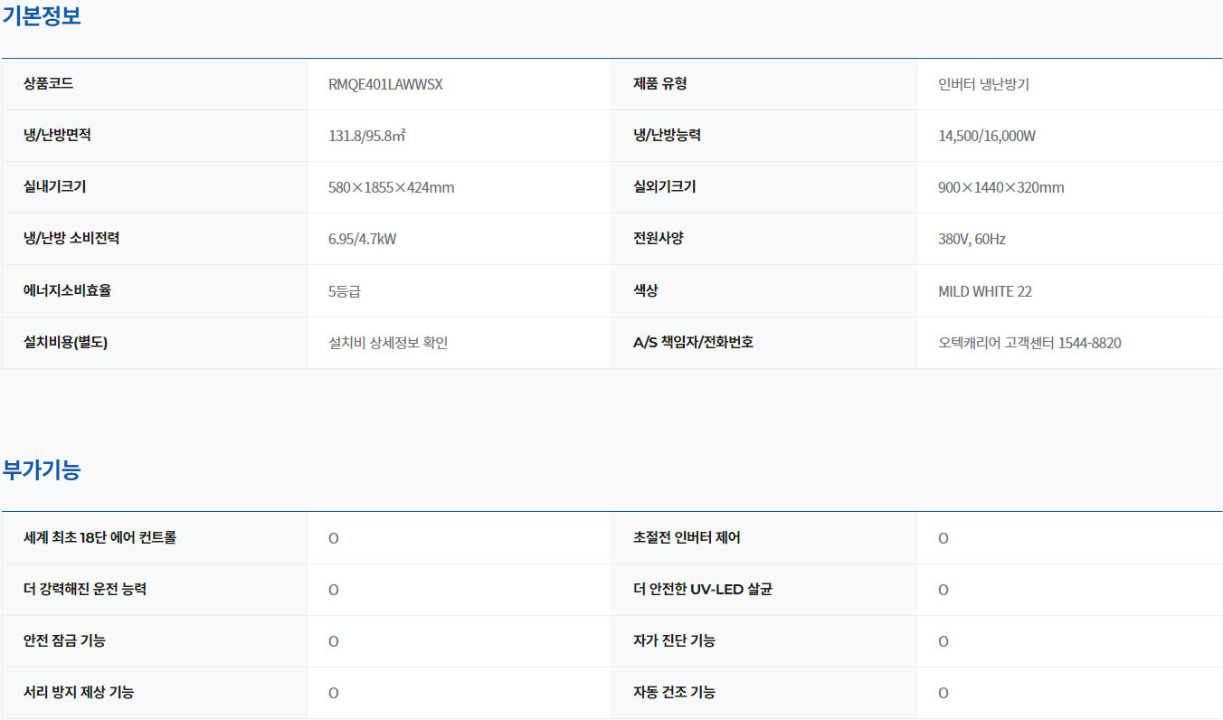 (에어컨 및 냉난방기 무상 A/S 2년, 공기청정기 및 의류건조기 무상 A/S 1년)