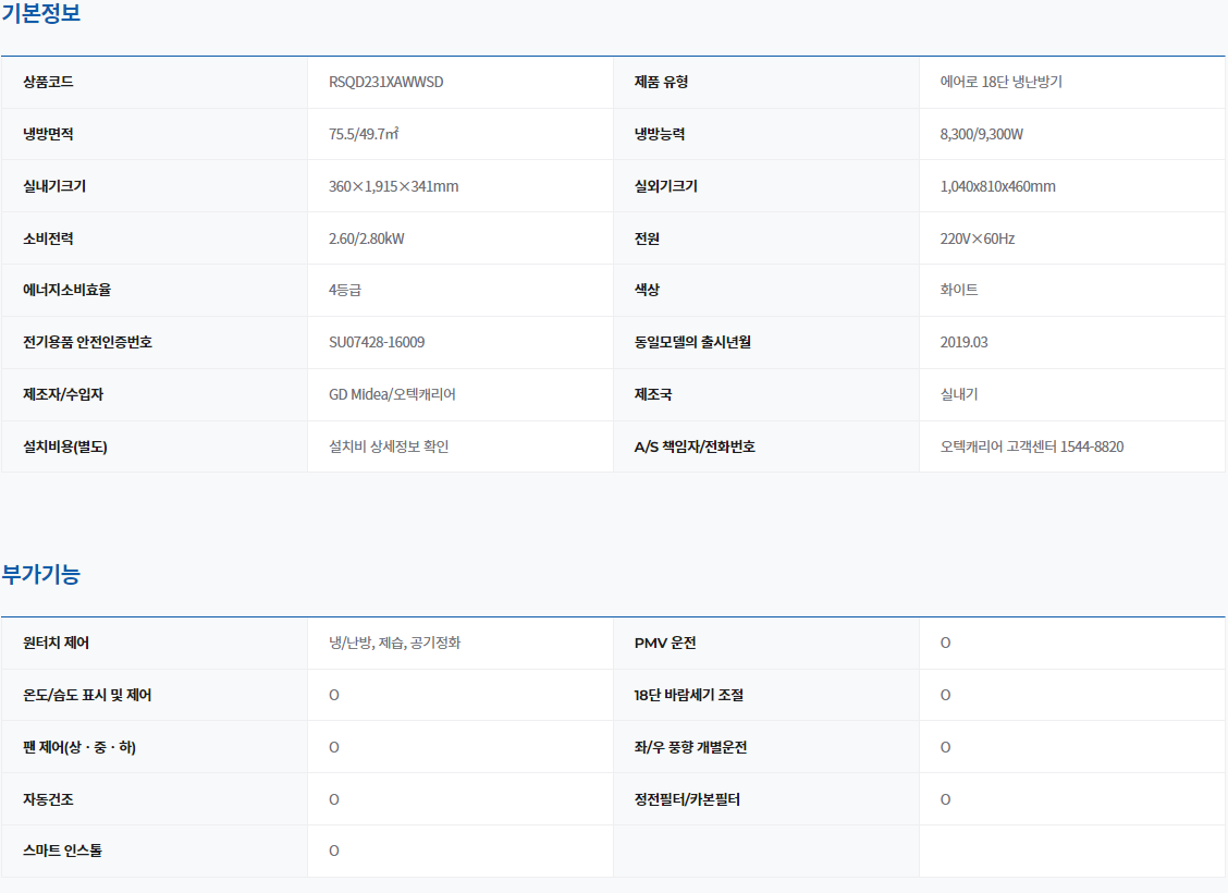 (에어컨 및 냉난방기 무상 A/S 2년, 공기청정기 및 의류건조기 무상 A/S 1년)