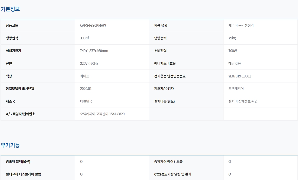 (에어컨 및 냉난방기 무상 A/S 2년, 공기청정기 및 의류건조기 무상 A/S 1년)
