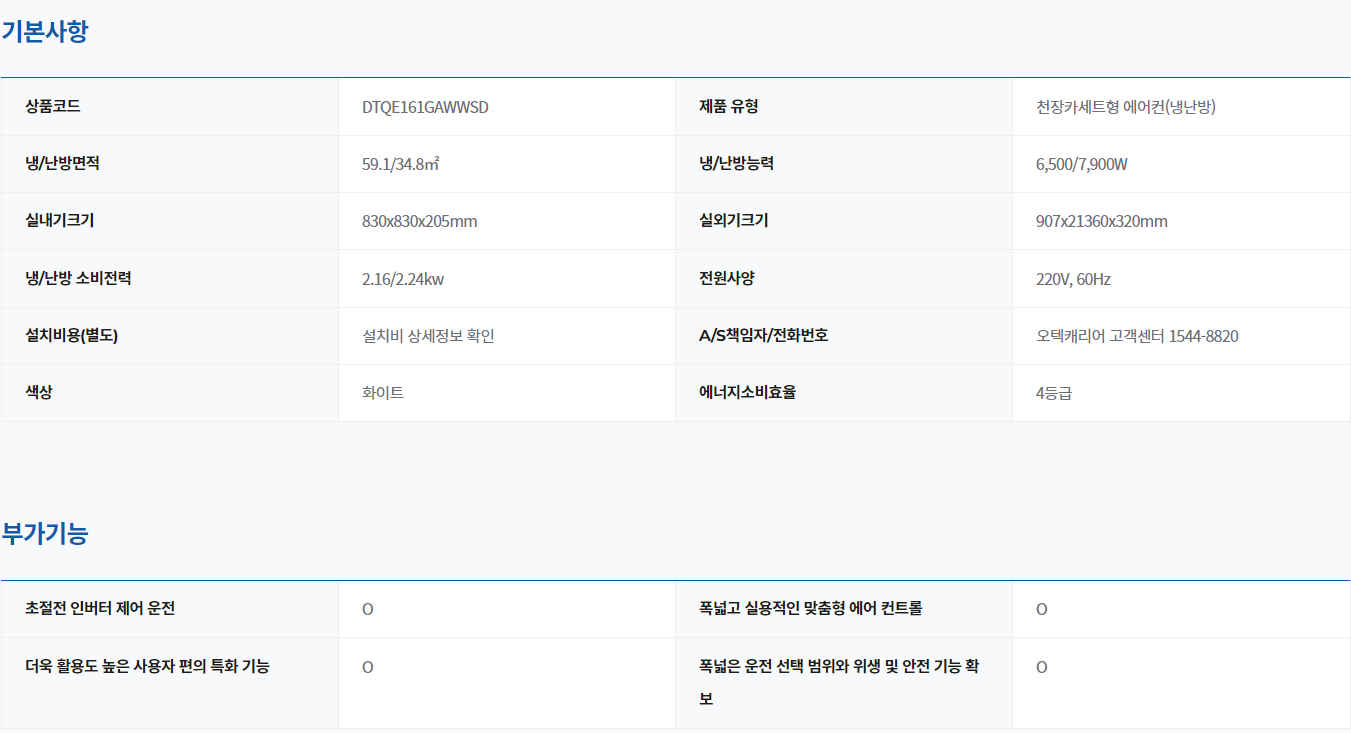 16형 천장카세트형 냉난방기 DTQE161GAWWSDT (계약전기간A/S무상지원,등록비면제, 기본설치비면제, 36/48/60개월) (※단, 도서산간지역제외)